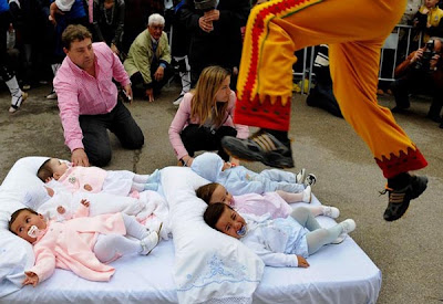We’re not joking, the Baby-jumping Colacho Festival is a real annual event celebrated all over Spain since the 1620s. It consists of grown men dressed as the Devil leaping over helpless babies. Why do they do this? They represent the devils that, when they jump, they take all the evil with them leaving the babies clean of evil. Here is a snapshot of one of the weirdest religious traditions.